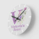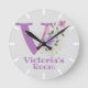 Designen har monogram & namn med blommor på vardera sida i en pastell vattenfärg stil. Exempel namn är Victoria. Barnkammarur. Ändra namn som önskat för någon med ett namn som börjar med V.