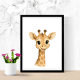 Tillsätt en stor dos glädje till din barnkammare med detta charmiga väggtryck med baby-giraff! Med ett glatt leende och milda färger ger detta djungel-inspirerade konstverk en lekfull och lugnande atmosfär till vilket barns rum som helst. Perfekt för baby shower, småbarnsrum eller samlingar med djur-tema i barnkammaren.