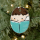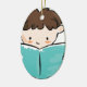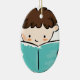 Barnläsning en bok julgransprydnad keramik