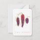 Skicka en hälsning eller skapa en inbjudan med det här platta 2,5-tums x3,5-tumskortet för BARN PEPPERS. Utformningen är min realistiska färgpenna teckning av tre chilipaprika av torkad hett. * Ändra enkelt "BARN PEPPERS" med "Anpassa den här mallen". Ändra teckensnitt, teckensnitt storlekt och/eller färg med Redigera design och Redigera text. Lägg till ett meddelande på baksidan med Redigera design och Lägg till text. * Andra kort och matchningsprodukter finns tillgängliga i kategorin BARI PEPPERS i min butik. ** Om du vill överföra den här designen till en annan produkt, form eller storlek, kontrollera min butik först för att se om jag redan har gjort det, för jag har fifflat med den för att designen ska passa bara höger och det kommer att spara dig besväret. Ibland går formgivningen bra, ibland gör de inte det. Bara fyi. Om du behöver hjälp eller har en fråga, meddela mig det.