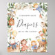 Ge dina gäster en fin riktning med vårt barnramsor gissa hur många blöjor-skylt, med akvarellgrönska eukalyptuskrans och elegant handskriven stil.