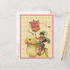 En nydesignad vintage som illustrerar en barnridå och en gigantisk chick med en banderoll i Påsk Hälsning. Lägg till en returadress och text på baksidan.