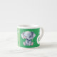 Barnens mugg / kopp / för barn. "'Espresso storlek''" mugg - en perfekt storlek för ett litet barn. På den här drickande kopp finns en söt elefant med stjärnor. Lägg till namn och börja om. Grönt och vitt.