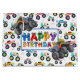 En färgfull Mönster av stora hjulbilar och Lastbilar stora giftbälte För barn födelsedagen