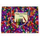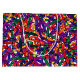 En grafisk illustration av party kritor av konstnären/designern Charmaine Paulson på en presentväska i Barns födelsedag.