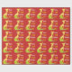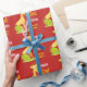 Vattenfärg för giraff för ungegrattis på födelsedagenpersonlig som djur slår in papper. Ljus röd bakgrund med ett upprepande mönster av roliga giraff. Vattenfärgstilgiraff i gult och orange bak gröna buskar. Personifiera i vit och gulna den roliga stilsorten till något att sägaGRATTIS PÅ FÖDELSEDAGEN med namn och ålder av den födelsedagpojken eller flickan.