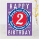 Ljusa färger och djärv design. Barnets födelsedagskort. 2 år gammal.