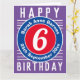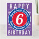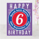 Ljusa färger och djärv design. Barnets födelsedagskort. 6 år gammal.