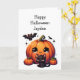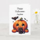 En snygg Halloween-kortsmodell som du kan personalisera! Lägg till barnets namn i området Anpassa. Det här har en söt Kawaii Halloween-svart katt och söt pumpa Insidan är en färgsida.