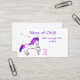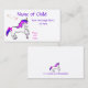 Nyckfullt grafiskt konstverk av en färgrik unicorn och en gullig säkerhetsnål klibbade i kortet. Text är i lilor och rosor som matchar konstverk. Wonderfully rolig telefonkort för något barn.