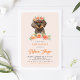 Bjud för Blommigtar med vattenfärgsbläck, babykläder. Fira med den här charmerande och vismiska babyduschinbjudan med vattenfärgade illustrationer av en dachshund-valp med persikokonaccenter och blommigtens bakgrund. Anpassa genom att lägga till din händelseinformation. Du kan också ändra bakgrundsbilden till valfritt foto eller bild som du vill använda. Den här blommigtens inbjudan till babydusch är perfekt för könsneutrala, vår och fallvisa babyduschar.