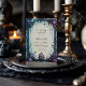 En moody men nyfiken babyduschdesign som kombinerar vintagens goda detaljer med en gnutta charm. Den här inbjudan är lila döskallar, droppa ro och ett hemsökt cupkakecentrum. Den är perfekt för älskare av spooky elegans och fantasi-flust.