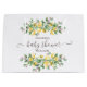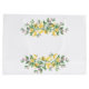 En vattenfärgscitroner och blommor på vit bakgrund.