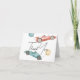 Skål för tävling-bilens födelsedagsfest eller barndusch tack vare ditt kort. Det här söta återbilskortet har vattenfärgsbilar och flaggor.