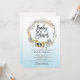 Vackra pojkar, babyduschinbjudan med ett vackert vattenfågelbo med mamma & pappa och ett bo med ett blått ägg i bleken på blå botten.