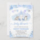 Elegant Vattenfärgsutkast Blommigt Arktiska Penguin- med polar, säl och halvguin blåvinterblommor med bakgrunden silver snöflingor, konetti och rand