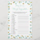 Våra mint- och guld-polka-babyduschkort för barn i ord har förvrängt 20 ord och alla ord är associerade med spädbarn. Du kan få gästerna att spela det här spelet (redigera bara riktningarna själv snabbt) eller så kan du göra det till en tävling genom att ge gästerna en viss tid för att slutföra spelet och ge ge ett pris till den som avslutas först. SVAR: 1)blöjor 2)babydusch 3)Änder 4)daghem 5)filt 6)nappar 7)bodydräkt 8)smak 9)aktivitetsmatta 10)eter 11)bassäng 12)flaska 13)rattle 14)barnvagn 15)mobil 16)mjukisdjur 17)pyjamas 18)pyjamas 11 9)schampo 20)bouncer