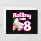 Denna skidparty-design är perfekt för en rullskridsko-partaj eller födelsedagstema för en 8-åring. Om födelsedagsflickan eller -pojken älskar att rullskridsko, kommer de att ÄLSKA denna skidparty-design! Den har en retroinspirerad "Rullar in i 8" födelsedagsfras med cool rullskridsko-grafik med regnbågar och stjärnor som är rolig och unik. Rolig rullskridsko-partajdesign för en 8-årsdag!