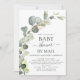 Eucalyptus Greenery Succulent Botanical Watercolor Vår Kön Neutral Pojke eller Flicka Baby Shower by Mail Investigations on white bakgrund - innehåller vackra manusskrivtypografi med elegant med moderna botaniska löv och grön för att speciella Mor ska vara firande.