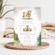 En inbjudan till babydusch med en illustration av en högikon i baby omgiven av stjärnor med måne och lada, och träd.