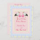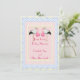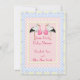 Söt i rosa kommer denna inbjudan att glädja mottagarna till en dusch i flicka. Lilla flicka, som hålls av storkar omgivna och inramade i rosa och blått polka dots.