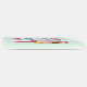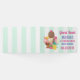 En personlig babyduschgäst bok illustrerade med en skål glass med tre utsökta skopor täckta av godis sprinkles. En glasskon med 3 påsar choklad, vanilj och jordgubbar. En dessertskål fylld med neopolitan smaksatt glass med ett giftigt körsbär på toppen. En grönt och vit rand mönster i bakgrunden.
