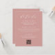 Kortet för en allt-i-ett-kammare för babyduschen har tre anpassningsbars fält för ytterligare information. Det visas med en pappersraffel, bok-begäran och QR-kod för register, i vit skrift på en dammig bakgrund för ro rosa med kalligrafaccenter för elegant.