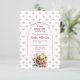 Söt bebis flicka dop invit med en bakgrund av vitt med rosa prickiga hjärtan.