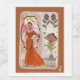 Strålar värme och självförtroende, denna collage visar en kvinna i en dramatisk, golvlång orange klänning placerad inom en stiliserad välvd ram. Kompositionen är balanserad av folkligt inspirerade blomster motiv och en rivpapper-bas med klassiska franska tidningsurklipp. Med sin blandning av djärva modemålningar och rustika, texturerade tillfälliga föremål, fångar detta verk en unik känsla av "vintage-möter-avantgarde" stil.