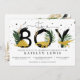 Modern inbjudan med handflatan löv och guld dinosaurier silhouettes.