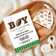 Skeva stort med vår fotbollstemannade barnduschinbjudan! Perfekt för fläkt i spelet, den här inbjudan innehåller en lekfull design med fotbolls-fält-bakgrund, komplett med målstolpar och ett charmerande fotbollsmotiv.