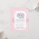 En modern inbjudan som har en söt baby-elefant med stort kutöst ögon som blåser ut små hjärtan ur sin koffert. En pastel rosa polka dots mönster för bakgrund. Anpassa enkelt med dina party-detaljer. Det är lämpligt att mamma är den som förväntar sig flicka.