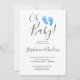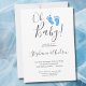 Skicka dessa enkla och snyggt babyduschinbjudningar till familj och vänner. De är dekorerade med modern typografi och söt handmålad vattenfärg baby fötter i pastellblått. Eftersom vi skapar vår egen teckning kommer du inte att hitta just den här bilden från andra designers. Anpassa dessa inbjudningar med ditt namn och din information. Ursprunglig vattenfärg © Michele Davies.