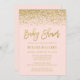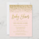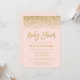 Chic rosa och inbjudningar till babyduschen i guld glitter. Modern och glamorös inbjudan som är lätt att anpassa. Mönster är platta tryckta illustrationer/grafik - INTE FATUAL GULD GLITTER.