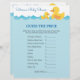 Ett klassiskt spel av toppen "Gissa Prisa" och "Baby Ord Scramble" i söt gummidesign i anka. Underbar för babydusch!