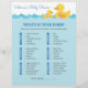 Ett klassiskt spel av toppen "Baby Bingo" och "What's in Your Purse" i snygg gummidesign i anka. Underbar för babydusch!