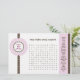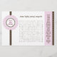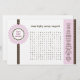 De här 5,5-tums x 8,5-tumsspelen kan vara personlig med din hedersgäst högst upp i namn. Använda dem som en roligt isbrytare för gästerna genom att låta dem ta tävling för att hitta det gömt baby ord. Den här designen koordinerar med andra objekt, t.ex. inbjudningar, tackkort, klistermärken med mera!