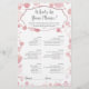 Doble sided Baby dusch-spel. Den ena sidan är "Vad finns i din mobil?" och baksidan är "Vad finns i din handväska?" Det här babyduschspelkortet har ett modernt typsnitt på bakgrunden till rosor, perfekt för flicka!