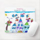 Sött, förskolebarns teckning slott omgivet av blå himmel, fåglar, sol och insekter. Förtjusande, färgglatt, flickigt musmattor med namn.