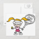 Barntennis vykort. Tennis tecknad serie av liten flicka som spelar tennis. Lägg till egen rolig text som citat, slogan, talesätt, skämt eller namn. Söta födelsedags kort för vänner och familj. Bra även för tränare, klubblag eller tävlingar.
