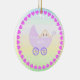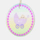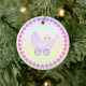 Personlig barnvagn omgiven av hjärtan julgranskula.. Texten 'Baby' kan anpassas.