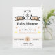 Nallebjörn med beige banderoll på vit bakgrund baby shower-inbjudan för pojke eller flicka. Kortet är helt anpassningsbart, du kan redigera text och färger på både text och design, även bakgrundsfärgen kan anpassas. Den har enkel, modern bokstavsstil och cirkelaccent för en rolig, avslappnad sammankomst som firar det speciella ögonblicket för den blivande mamman. Om du behöver hjälp med att anpassa detta kort, kontakta designern på ArtByLiz@gmx.com och det kommer att anpassas för dig utan extra kostnad.