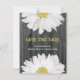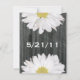 Ett bröllop spara datum med en bakgrund av barwood på framsidan och baksidan med daisy överst och grund. Anpassa text fram och tillbaka med information om tillfälle. Sök efter matchande artiklar på Rosa Schoolhouse. com