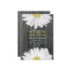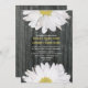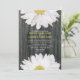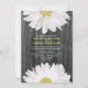 En enkel bröllopsinbjudan med daisy som söker upp från topp och grund. Bakgrund är barnwood. Anpassa matchande text i mitten med information om bröllop. Motstående sidofunktioner som matchar barnwood-bakgrunden. Anpassa med namn på bruden och trippen över monogrammet. Återvunnet papper. Formuleringen kommer från brud & groom tillsammans med föräldrarna.