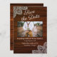 Varje kärlek-historia följer deras egen väg, liksom denna nätt och jämnt förfinade bröllop stil. Barnwood och vintage snöre gräns med elegant-skript och matchande modernt typsnitt som ger en charmerande allure mot en western vibe. Underbar för teman för stallar, lada eller bröllop utomhus. Land elegans med lingträ. Anpassa bild, namn, datum och plats.
