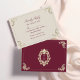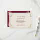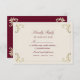 Elegant bourgogne och guld RSVP-kort med utsmyckade barockdetaljer och ett lyxigt monogram på baksidan. Denna klassiska design kompletterar perfekt en formell eller vintage bröllopsserie. Gästerna kan enkelt ange närvaro och måltidsval. Perfekt för höst- eller vinterbröllop, passar vackert med matchande inbjudningar, detaljerade kort och menyer från samma kollektion.