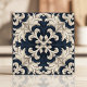 Barock dekorativ elfenben och marinblå kakelplatta