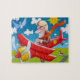Färgglad rolig pusselbild för barn från ett original handmålat konstverk.