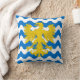 "Barry vågigt azure och argent, en örn som visas eller." Populace-bricka för Årquelles Barony (SCA). Baksidan av kudden är en Renaissance mönster i samordningen av färg.