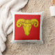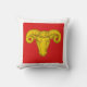 "Gules, ett ramhuvud i skåp eller innanför en gränslinje." Populace-brickan för Ramshaven i Society for Kreativ Anakronism. Baksidan av kudden är ett medeltida mönster i samordningen av färg.